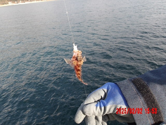 サビキ仕掛けのお客様、ハリにエサを小さく付け海底を探るとカサゴが釣れました(^^♪