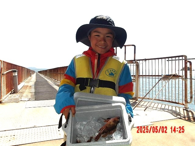 G・Wでお父さんの実家に遊びに来て、ファミリーでご来園頂いたお客様、良型のカサゴをGetされました♪ また来てくださいね。