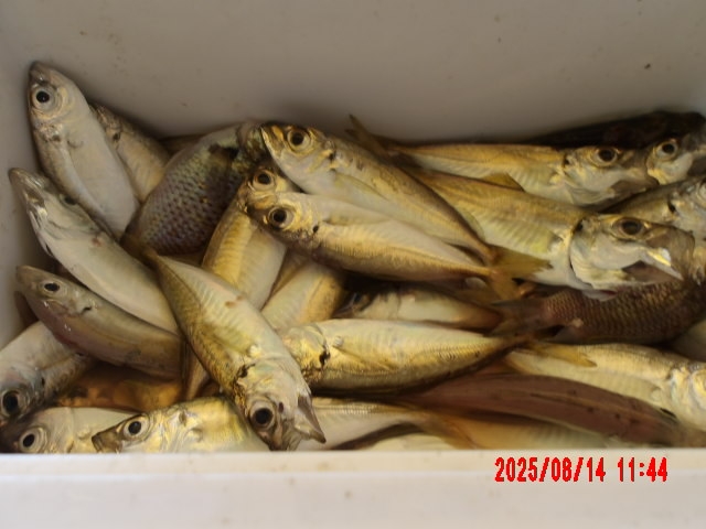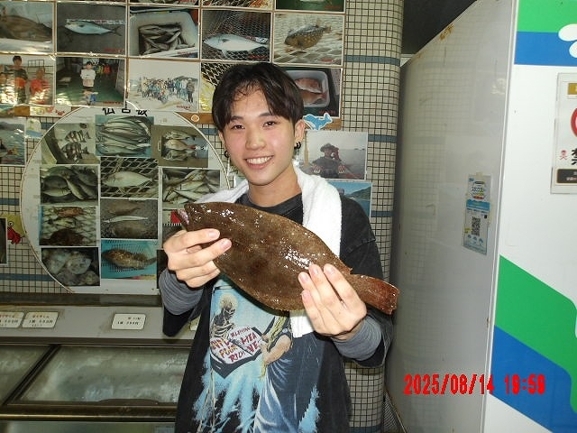 お盆で帰省中のお客様、アジの25cmや泳がせ釣りでヒラメをGetされました。粘り勝ちですね!