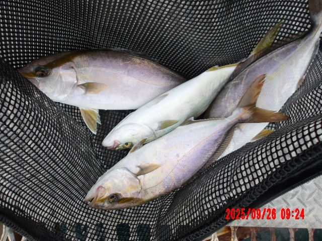 常連のお客様、ウリボウでネリゴを4匹、アジでヤズを1匹釣られました。