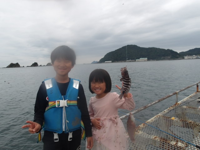 仲良し兄妹さん、魚が釣れ、笑顔が最高です♡