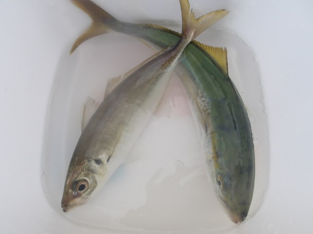常連のお客様、アジとブリ(ヤズ)を釣られました(^^♪
