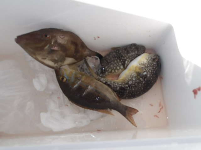 久しぶりに、ウマズラハギ、フエフキダイがあがりました(^^♪