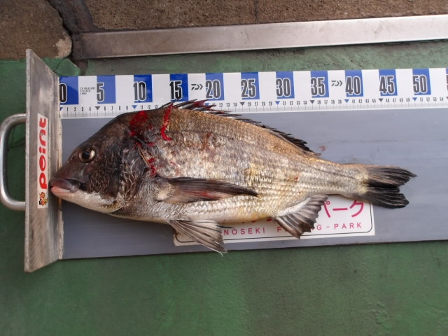 49cmの見事なチヌが釣れました。宇部からお越しのお客様、「年の瀬大物つり大会」初エントリーです!
